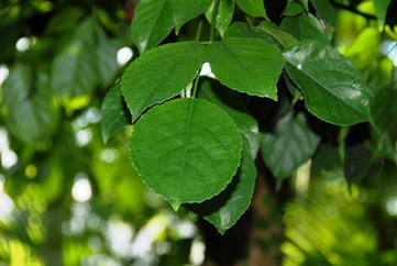 アカギは、コミカンソウ科(←トウダイグサ科)の常緑樹である。樹高は25m程度にも。樹皮は赤褐色。葉は互生し掌状複葉で、3枚の小葉を持つ。小葉は柔らかな革質で、表面には光沢がある。3月頃黄緑色の小花を見せる。果実は扁平な核果で、肉質、卵円形または扁球形、径1~1.5㎝程度、褐色に熟す。 | |