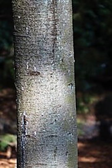 アオトドマツはマツ科の常緑樹である。雌雄同株。樹高は20~25m程度となる。樹皮は青灰色となり、和名の所以となっている。本種の樹皮の表面での亀裂は少ない。6月頃に開花し、前年枝の下に紅色の雄花が密につき、雌花は散在する。黄緑色の球果は径25㎜、高さ5㎝程度で直立してつく。本種の場合、球果の苞鱗片が種鱗片よりも長く突き出で反る点でアカトドマツ識別できる。 | |