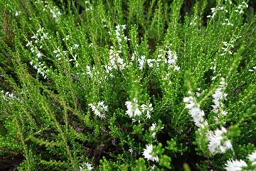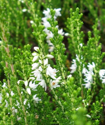 エリカ・ワガンス 'ライオネス'はツツジ科の常緑樹である。本種は、アイルランド・コーンウォール半島原産のErica vagans種から作出された園芸品種である。樹高は30~90㎝程度となる。茎下部でよく分枝をし、横方向にマット状に広がりを見せる。葉は長さ5ミリ程度の線形で枝に螺旋状に輪生する。7~9月頃、枝先に15㎝程度の補充花序を出し、白色の筒状小花をつける。 | |||