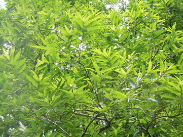 シロヤナギはヤナギ科の落葉樹である。本種は原産地の項に記した地の河原の礫地や湿り気の多い原野等に自生の見られる樹種である。樹高は20m程度となる。樹皮は淡灰褐色で、縦に割れ目が出来る。葉は長さ5~10㎝、幅1~2㎝程度の長楕円形~披針形で、縁部には細鋸歯があり、先端部は尖り、基部では短い葉柄に連なり枝に互生する。葉の付け根には小さい托葉が伴う。3~4月頃、葉の展開と同時に開花する。雄花序は長さ2.5~4㎝程度の円柱形で、花には雄蕊が2個つき、葯は黄色。雌花序はながさ 3㎝となる。花後には蒴果をつけ、6月頃には成熟して開裂する。 | ||