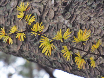 イヌカラマツは、中国原産のマツ科落葉樹である。中国東南部の標高1000~1200m級の山地に自生が見られる樹種である。樹高は40mにも達する。秋には、我が国のカラマツよりも美しい黄金色に染まる。葉も我が国のカラマツよりも広くて長い。 | ||