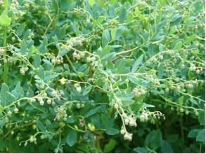 | 解説 | ウラジロハナヒリノキは、ツツジ科の落葉低木である。樹高は1m前後。よく分枝する。7~8月頃に、淡緑色で壺型の花を見せる。ウラジロハナヒリノキは、葉がハナヒリノキより幾分小さく、高山帯に自生が見られる。 | |
