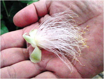 | 解説description | サガリバナはサガリバナ科の常緑樹である。一般的には3m前後だが、大きなものは10m以上にも及ぶ。葉は枝先に集中し、長さ10~30㎝程度。葉腋から20~60㎝程度の総状花序を垂れ下げる。ブラシノキの花のような形状で白色の花を垂れ下げる。夕刻に開花し、翌朝には散ってしまう。果実は長さ5㎝前後の四角形にに近い卵円形で、有毒のため魚毒として用いられるという。 | |