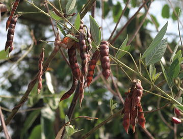 和名は、漢名「樹豆」の音読みから。 属名は、本種のマレー語名をラテン語化したもの。 種小名も属名の語源と同じ。 |