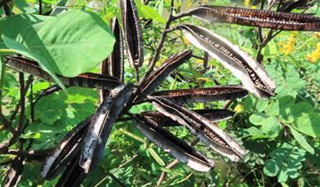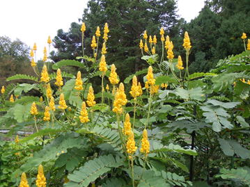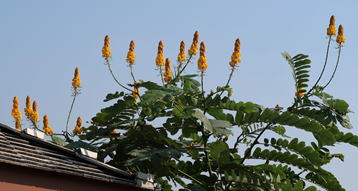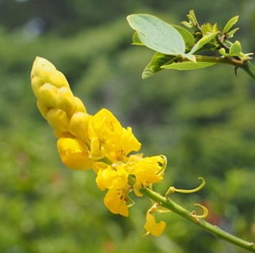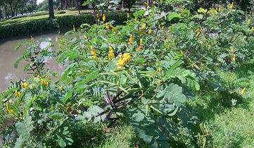 ハネセンナは、マメ科の落葉樹である。樹高は2~4m程に。葉は偶数羽状複葉で、8~14対、長楕円形の小葉を持つ。8~10月頃、枝先や葉腋から花茎を立ち上げ、総状花序に黄色い花をまとまってつける。莢は長さ10~20㎝程度の扁平な形状で黒色である。莢には約60個程度の種子を内包する。 | |||