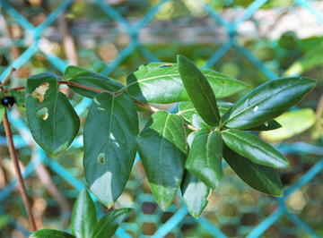 | 解説 | スイカズラ属は北半球に2千種ほど分布しているが、その内、わが国では25種が自生している。スイカズラは、わが国では普通の山野に自生が見られる。葉は楕円形で、その一部が落葉する半落葉性の蔓性木本植物である。蔓は右巻きに他物に巻き付いて生長する。花は6月~7月に開花する。2唇形の長い花筒をのばす。咲き始めは白色か淡紅色だが、後に黄色へと変わる。果実は秋に黒く熟す。 | ||