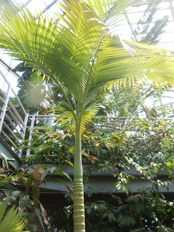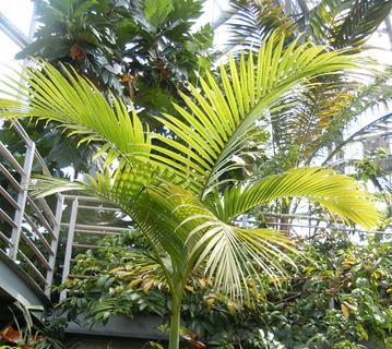 マイオレユスラヤシは、ヤシ科の常緑樹である。本種は、オーストラリアクィーンズランド洲キュランダ近郊のマイオレ村の標高350~400m熱帯雨林地域に自生するユスラヤシである。樹高は20m程度となる。葉長4m程度となり、9~12個の小葉を持つ。葉柄の長さは22㎝程度となる。幹から長さ0.5~1.5㎝程度で淡黄色の集散花序を下垂し、径1㎝前後程度で黄白色の小花を多数つける。果実は、長さ1.5~2㎝程度の円錐形で赤熟する。 | |