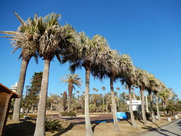 ジャワビロウはヤシ科の常緑樹である。別名に「セイタカビロウ」とあるように、原産地では樹高は30mにも達するという。また、同じく別名に「マルハビロウ」とあるように、葉姿はほぼ円形である。また、葉の切れ込みが浅いために、美しい葉姿を見せてくれる。しかも葉の大きさが最大で2m近くもある。葉は長い葉柄を持ち、掌状に裂け、幹の周囲に螺旋状に並ぶ。花は、長さ0.9~1.2mの長い花柄を持った花序につき、3枚の花弁を持った花が房状につく。花後には径2㎝程度丸みを帯びた核果をつけ煉瓦色に熟し、最終的には黒色となる。 | |