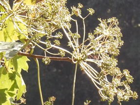 | 解説 | ハリギリは、ウコギ科の落葉樹である。樹高は25mにも達する。小枝には刺がある。葉は掌状で、5~9裂し、長さ10~30㎝程度。6~7月に枝の先に散形花序を出し、黄緑色の小花を多数見せる。果実は、球形で、径5㎜前後、10月に黒く熟す。 | |