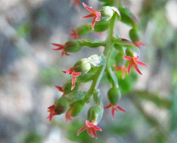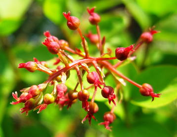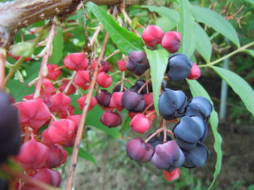 | 解説 | ドクウツギは、ドクウツギ科の落葉樹である。樹高は1.5m程度に。枝は四角形で褐色。葉は卵状楕円形。4~5月頃に葉腋に総状花序を出し、黄緑色の小さな5弁花を見せる。果実は赤色の球形で、やがて、黒紫色に熟す。 | ||
