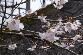 ヤブザクラは、バラ科の落葉樹である。樹高は5m前後程度となる。若芽は開花時には少し伸びる。若枝は無毛。葉は長さ3~7㎝、幅1.5~3.5㎝程度の倒卵形から長楕円状倒披針形で、縁部には欠刻状重鋸歯を持ち、先端部は尾状に尖り、基部は円形~楔形となり、枝に互生する。3~4月頃枝先の葉腋から径3㎝程度で白色~淡紅色の花を散形状に2~3個下垂する。花弁は5個の一重咲き。 | ||