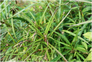 ヤマビワは、アワブキ科の常緑樹である。樹高は7m程度となる。樹皮は平滑で赤褐色となる。葉は、長さ12~22㎝、幅34~7㎝程度の狭倒披針形~倒披針形で、縁部には粗鋸歯があり、先端部は幾分刺状となった突起となり、基部では長さ2~4㎝程度の葉柄に連なり枝に互生する。葉は、枝先に束生し、表面には光沢があり、革質である。5~6月頃、本年枝の先に円錐花序を出し、径4㎜程度で白色の小花を多数つける。花序には褐色毛が密生する。花後には径6~7㎜程度でほぼ球形の核果をつけ、赤色を経て、11月頃には紫黒色に熟す。 | |