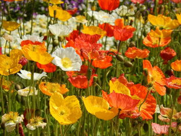 アイスランドポピーはケシ科の宿根草である。我が国では、夏の暑さのために、1年草扱いとなる。我が国で栽培されるポピーの中では最も早く開花する。草丈は30~50㎝程度。3~4月頃、径7~8㎝程度の4弁花を開花する。花弁は非常に薄く、ヒラヒラと風に揺れる。花色は、白・ピンク・オレンジ・赤等多彩である。 | |