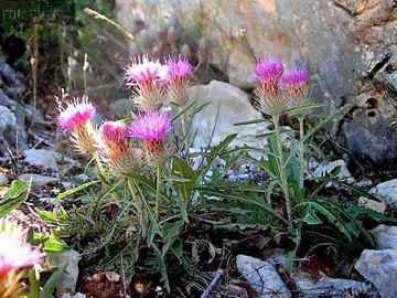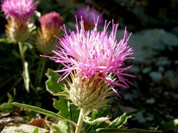 クラセア・バエティカ・ルシタニカは、キク科の多年草である。本種は、イベリア半島の標高300~1400m程度の地に自生の見られる野草である。草丈は10㎝程度となる。根出葉は長楕円形で、縁部は不規則に大きな鋸歯状と化し、ロゼットを構成する。茎葉は、上方に行くに連れ小葉となり、葉幅も狭くなるが、縁部には刺状の突起を持ち、茎に互生する。5~6月頃、茎頂に径3㎝程度で桃紫色の頭花をつける。 | |
