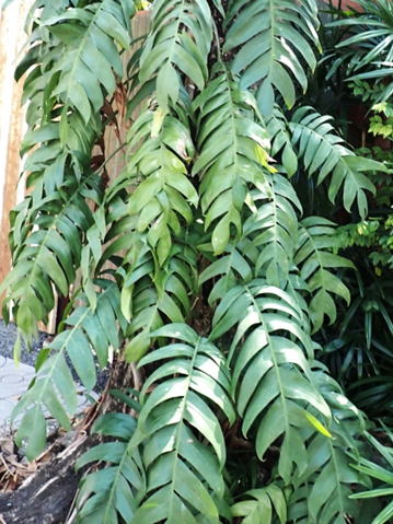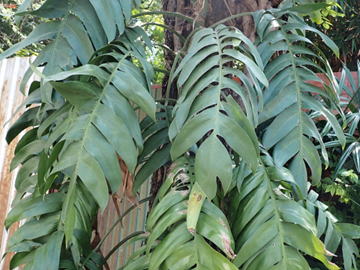 マルニエラ・ゴールデンハートは、サボテン科の多年草である。本種はメキシコ南東部森林地帯の樹木に着生するサボテンである。我が国の園芸界でも馴染みのある「月下美人」に近いサボテンであり、花姿もよく似ており、夜開性である点もよに似ている。葉は、一見してシダの葉のような形状をしており、最大1.8mにも及ぶという。花は、夜開性で、長さ30~50㎝程度の筒状、白色の花弁を多数持ち、その花弁群に抱きかかえられるように、中央部には鮮黄色の雄蕊群がある。原産地では、本種の受粉媒介者はガやコウモリであるという。しかし、滅多に開花しないことでも知られている。 | ||