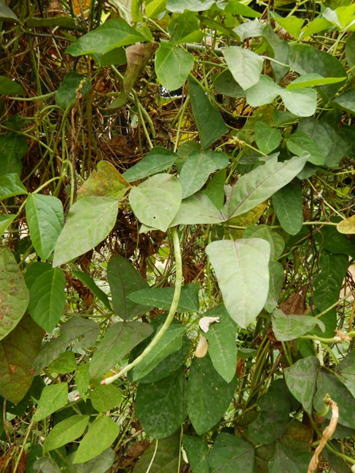 ジュウロクササゲはマメ科の蔓性1年草である。草丈は2~4m程度となる。花は、白~紫色の蝶形花である。真夏に結実するが、莢の長さは30~40㎝程度となる。豆は赤褐色に熟す。 最下段右下に掲載した写真のように莢果が紫色をしている場合には、「ムラサキナガササゲ」と呼ばれる。 |