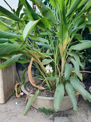 ウコンは、ショウガ科の多年草である。草丈は50㎝前後に。葉姿は長い葉柄を持ちカンナにも似た葉身をつける。葉は基部で交互に抱き合い2方向に数枚出る。葉は表裏共に平滑で、全縁、鋭頭である。8~9月頃抱き合った葉柄の間から花茎を伸ばす。花穂は緑白色~淡桃色の苞葉が重なり合ったもので、実際の花はその下部に見られる黄色い筒状花である。緑白色の花穂を出す。、根茎を煮て乾燥させたものが鬱金粉(ターメリック)であり、胆汁分泌促進役としての効用を有する。また、コショウやシナモン他の香辛料と混ぜてカレー粉を作る。また、根茎の主成分であるククルミンは黄色の色素であり、染料として利用された。ラーメンやタクワンの黄色もこのククルミンから。 | ||
